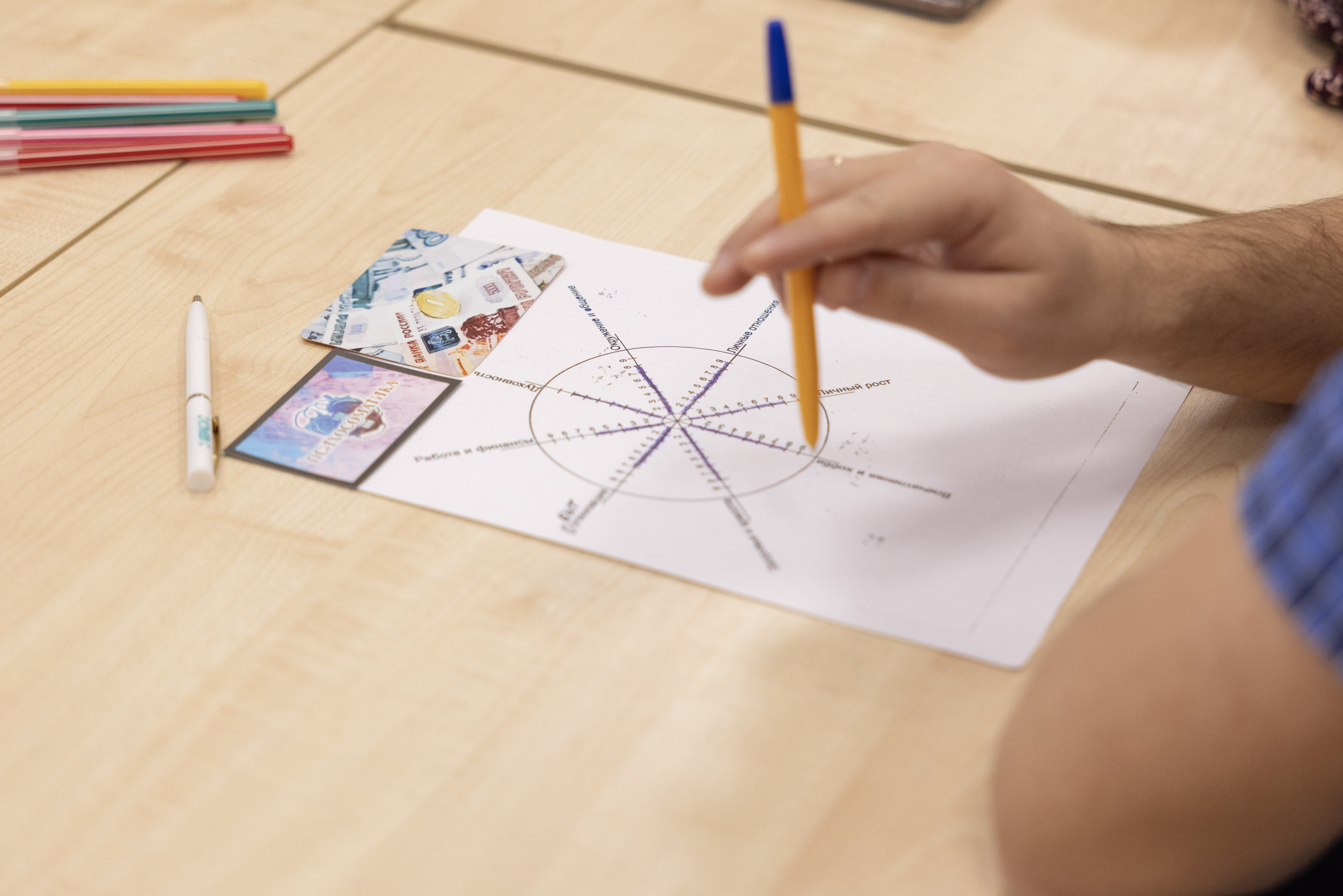 - Создание вашего «Колеса»: Вы вместе со специалистом определяете 8 ключевых для вас сфер (здоровье, карьера, финансы, отношения, личностный рост, отдых, окружение, духовность/хобби) и оцениваете каждую по 10-балльной шкале.